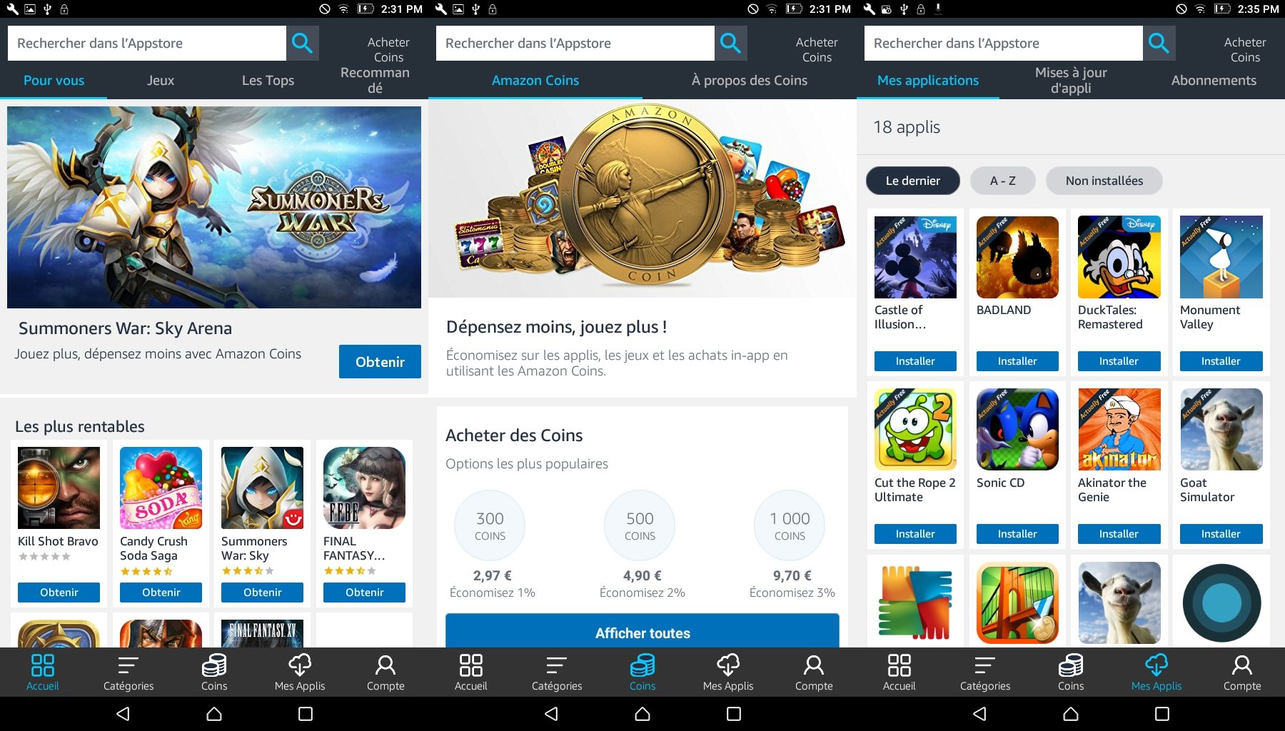 Sorti dans le plus grand silence, le nouveau magasin d’applications Android d’Amazon inaugure un nouveau design et met surtout l’accent sur les Amazon Coins, une monnaie d’échange virtuelle que les utilisateurs doivent acheter pour ensuite les échanger contre des applis. Dévoilés en 2013, les Amazon Coins ont été créés pour encourager le public à payer les applications qu’il télécharge.