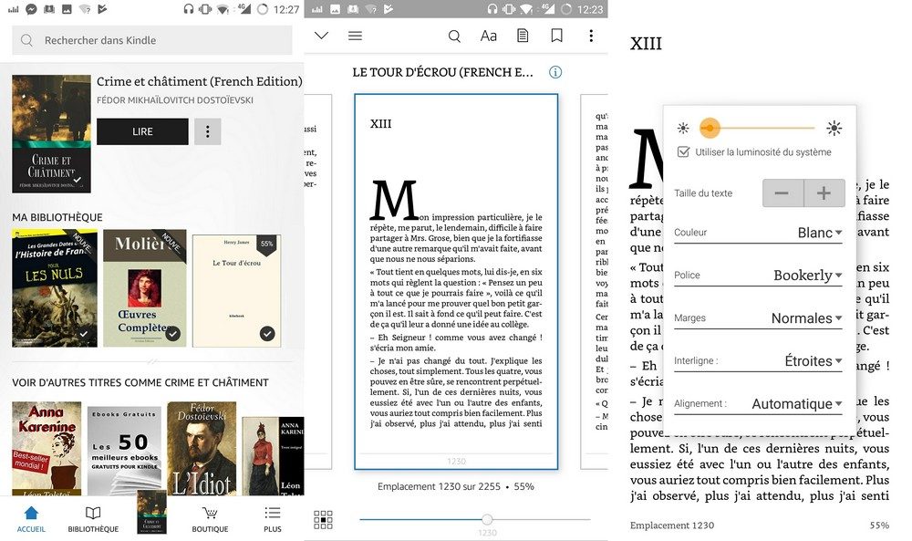 Kindle met enfin un point d’honneur à améliorer le confort de lecture de ses utilisateurs. Couvertures de livres plus grandes, polices lisibles et adaptées aux écrans mobiles, choix des thèmes clair ou foncé : chacun profite d’une interface personnalisable qui s’ajuste à ses habitudes de lecture.
