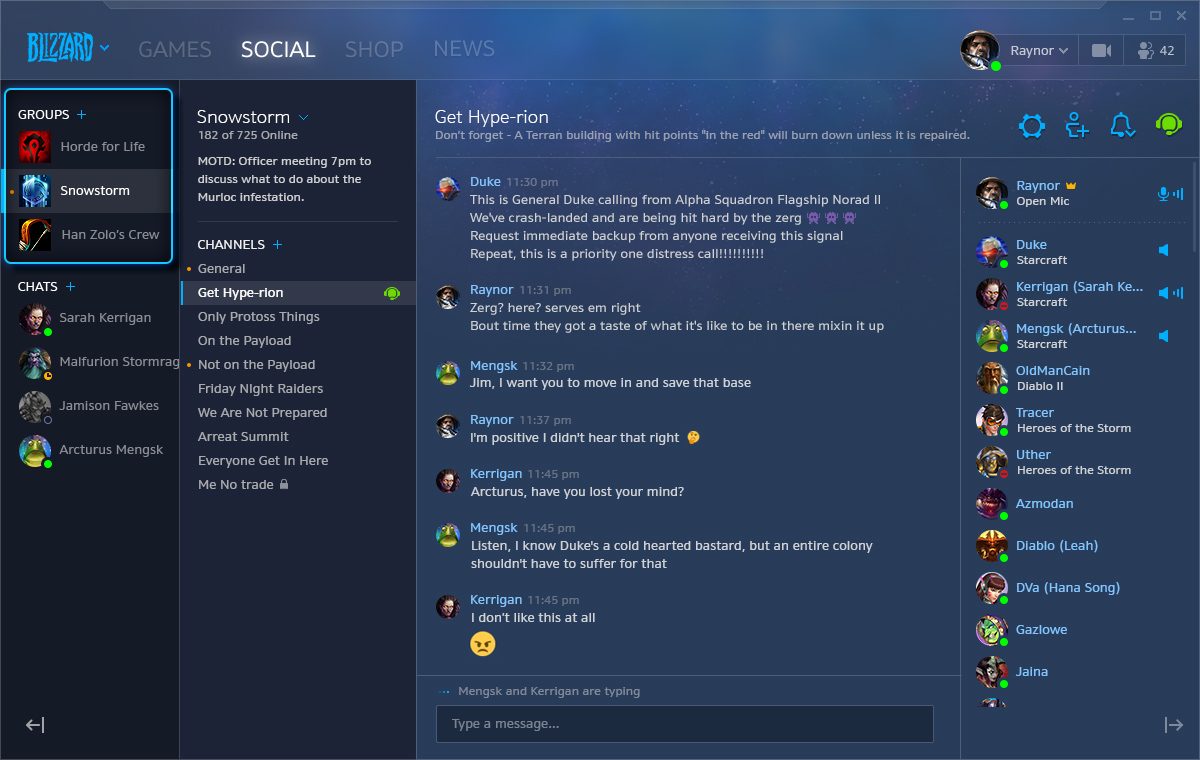 Les échanges instantanés confèrent à Battle.net un aspect toujours plus orienté réseau social avec possibilité d’envoyer des messages aux amis hors-ligne qui en prendront connaissance lorsqu’ils se reconnecteront. Dans la mesure où le client de Blizzard est multiplateforme, il est parfaitement envisageable de commencer une conversation sur mobile et de la terminer sur ordinateur.