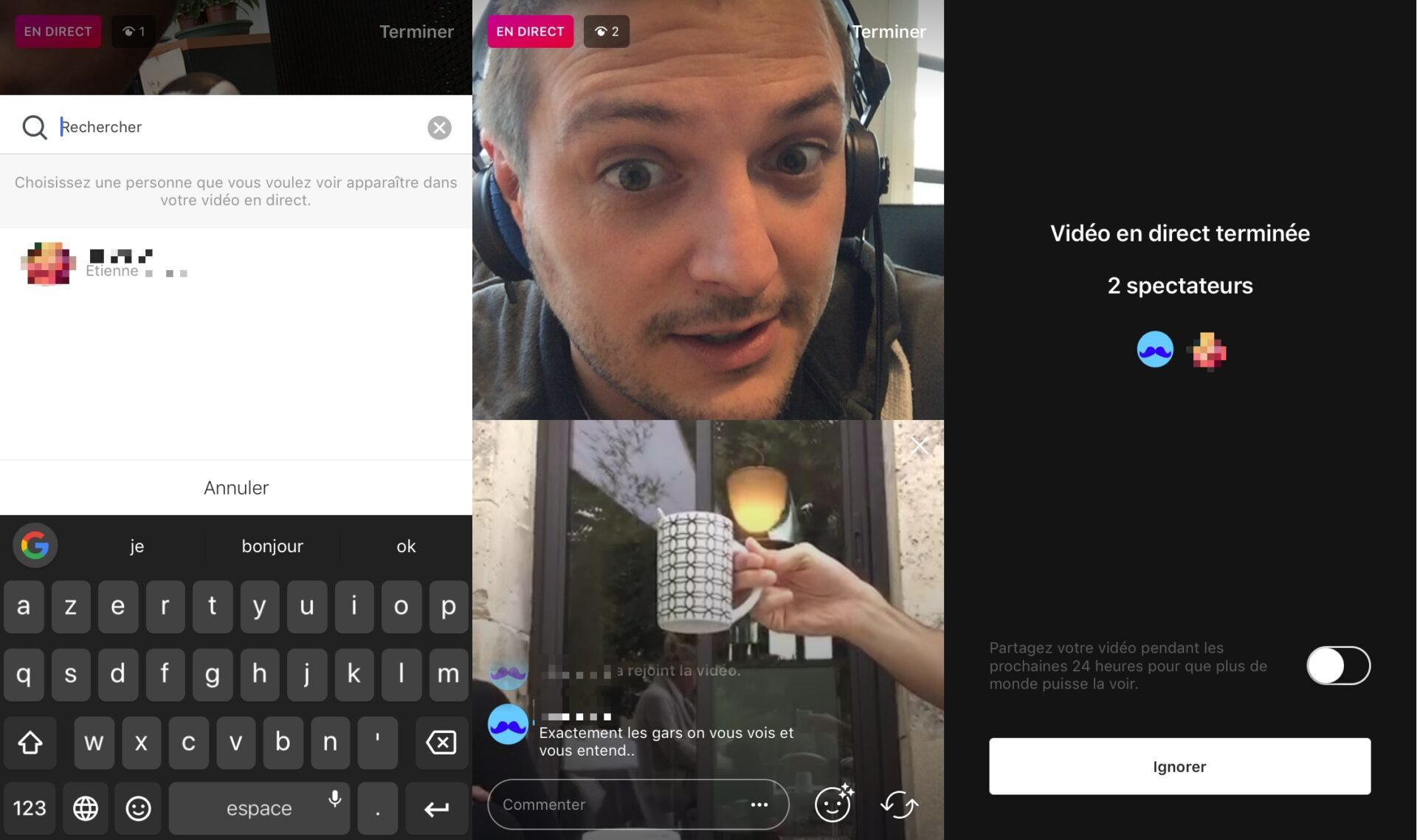 Instagram dévoile cette semaine deux nouvelles fonctionnalités. La première permet de faire un live en duo. Pour l’utiliser, il faut lancer un live sur Instagram, puis appuyer sur l’icône figurant deux smileys en bas de l’écran pour sélectionner votre partenaire de live. L’écran est alors divisé en deux et chaque protagoniste diffuse en direct sa vidéo. Vos contacts reçoivent une notification les informant de votre diffusion en direct et peuvent le rejoindre et réagir.