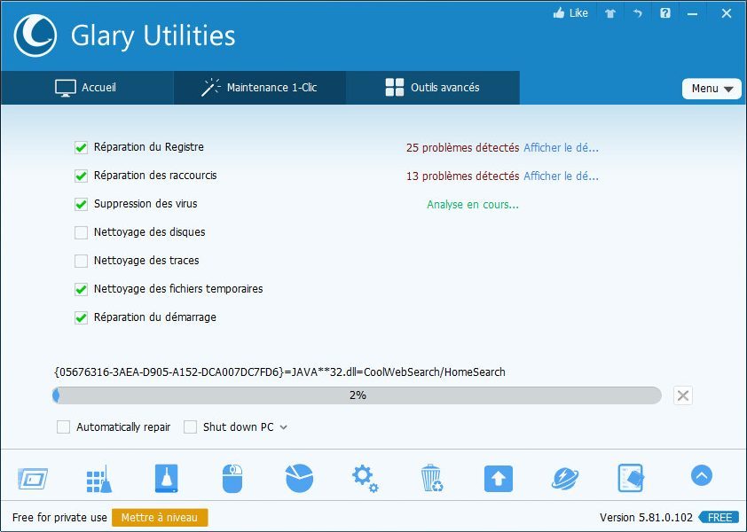 Les développeurs ont également travaillé à l’optimisation du module de réparation du registre, un travail d’amélioration sur l’algorithme de nettoyage qui permet à Glary Utilities d’augmenter son efficacité de près de 30% par rapport aux précédentes versions.