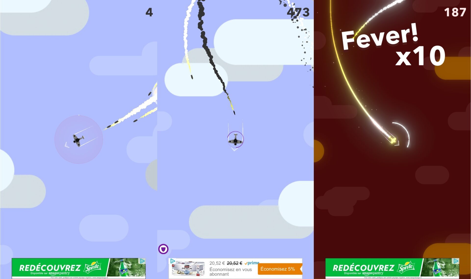 Go Plane teste votre résistance au stress et vous récompense en fonction de votre endurance en lâchant des bonus dans le ciel pour vous donner quelques instants de répit, mais également en débloquant de nouveaux aéronefs plus rapides et plus efficaces.