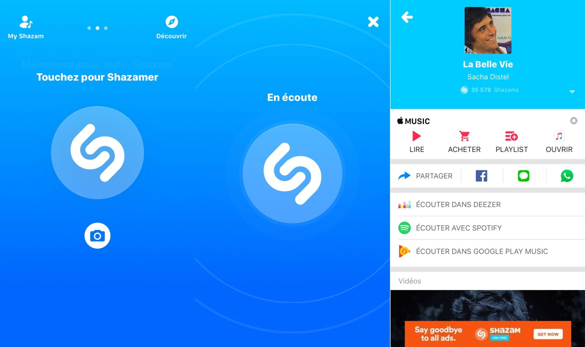 Une fois le résultat obtenu, Shazam vous avertis de la disponibilité du ou des résultats qui sont consignés dans la section Mon Shazam. A noter qu’il est possible, pour ceux qui possèdent un compte Shazam et y sont connectés, de conserver un historique complet de vos recherches synchronisées entre tous vos appareils.