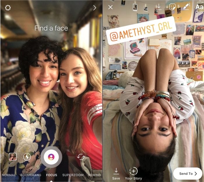 Les images capturées avec Focus peuvent ensuite être complétée par l’ajout de filtres, stickers et texte avant d’être envoyées à vos abonnés via Instagram Direct ou d’être ajoutées à votre story. L’option est disponible pour les iPhone SE, 6S, 7, 7 Plus, 8, 8 Plus et X ainsi que sur les smartphones Android sortis depuis 2015.