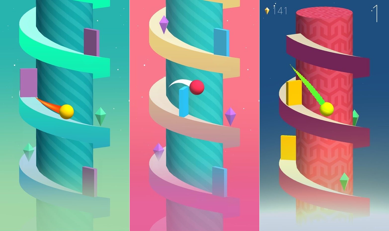 Après quelques minutes d’adaptation, le cerveau comprend à quel moment déclencher le saut pour que la balle continue de dévaler cette interminable rampe. Spiral va littéralement vous retourner la tête, jusqu’à ce que vous acquériez les bons réflexes. Sautez au-dessus des obstacles sans jamais les heurter et récupérer au passage les gemmes grâce auxquelles vous pourrez ensuite débloquer de nouvelles balles, mais aussi de nouvelles tours.
