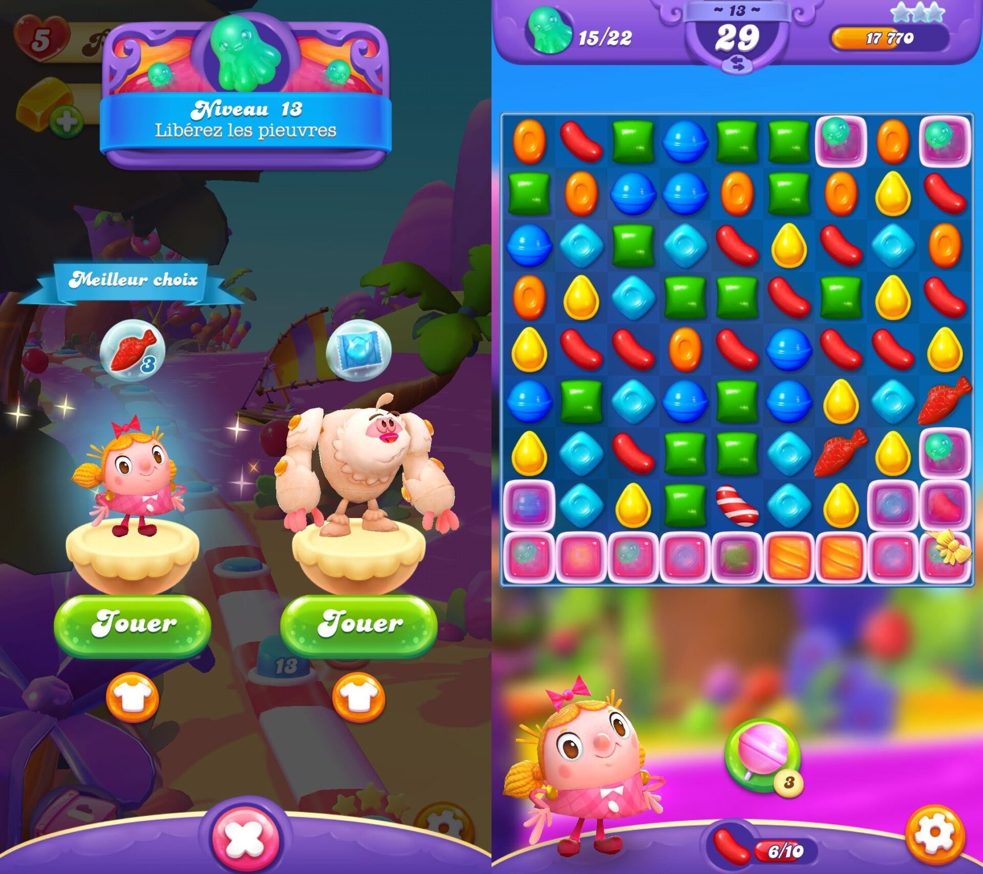 Petite évolution cependant : Candy Crush Friends Saga offre la possibilité de choisir le personnage avec lequel passer les niveaux. À chaque protagoniste emblématique de la série correspond une compétence qui pourrait bien débloquer des situations désespérées et accélérer la partie.