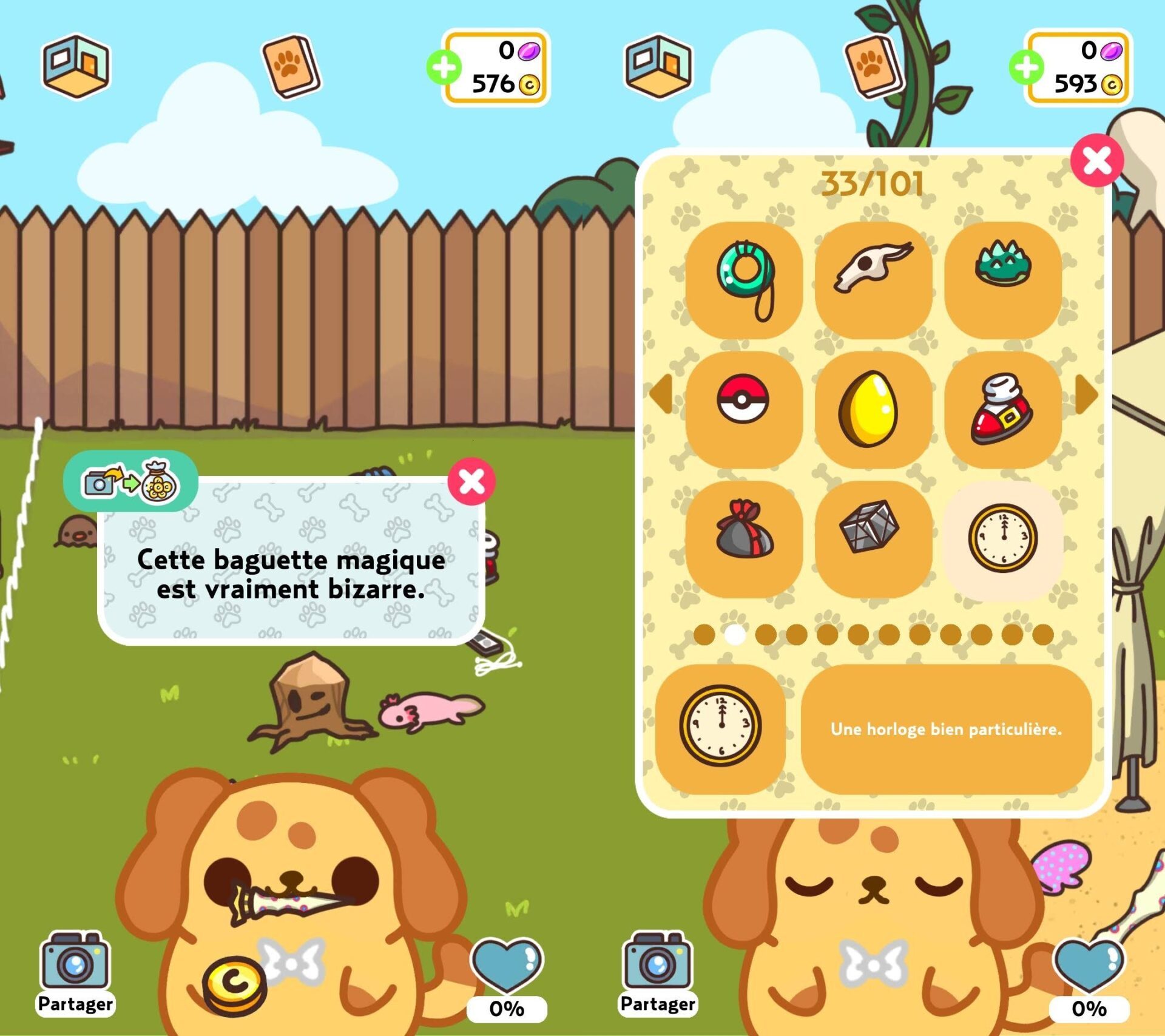 Toilettage, papouilles et biscuits pour chiens devraient faire le bonheur de vos nouveaux compagnons poilus. Bonnes pattes, ils n’hésitent pas à faire le tour du quartier et à vous rapporter des objets que les voisins auraient inconsciemment laissé traîner. Tant pis pour eux et tant mieux pour vous : voilà de quoi meubler les différentes pièces de votre maison aux frais de la princesse !