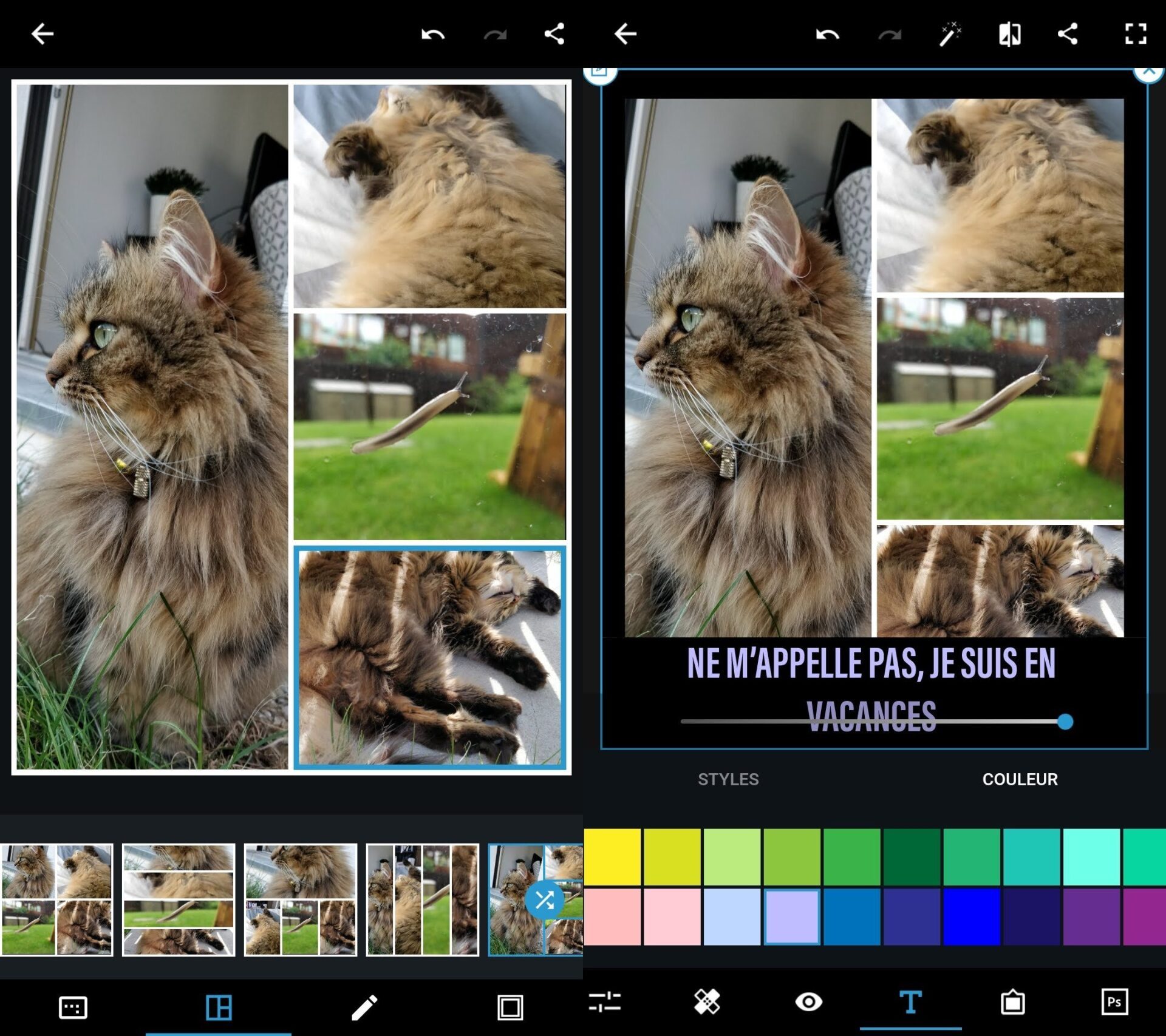 Sur iOS, Photoshop Express met également l’accent sur la diversité des polices de caractères. On y découvre par ailleurs une nouvelle catégorie, Eclat, destinée à améliorer le rendu visuel de vos photos et collages.