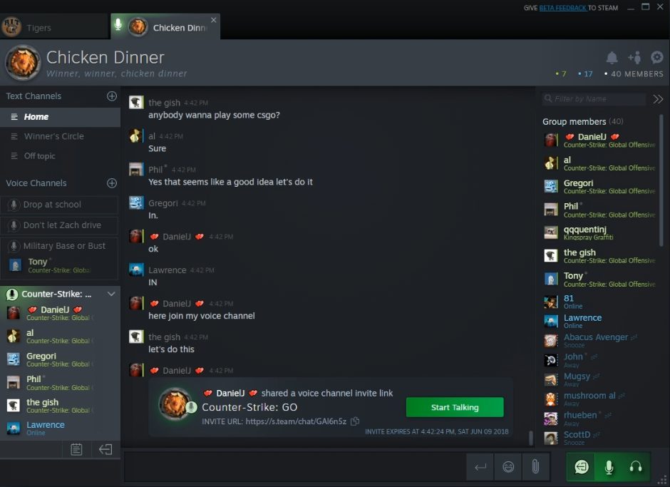 La partie vocale de Chat a également été largement améliorée grâce à l’utilisation de la technologie WebRTC. Notez que l’ensemble des conversations échangées sur Steam Chat sont totalement chiffrées.