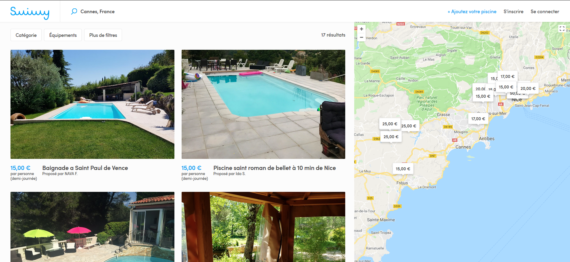 Les particuliers n’ayant ainsi pas le temps de profiter de leur piscine peuvent rentabiliser leur investissement. Tous les tarifs affichés sur Swimmy sont valabes par demie-journée et par personne avec la possibilité de régler la location directement depuis le site.