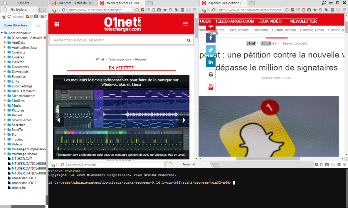 S’adressant en priorité aux utilisateurs avertis, Sushi Browser est un navigateur web open source proposant des fonctions inédites. Le programme intègre un système multi panneau permettant d’afficher deux onglets distincts dans la même fenêtre, avec la possibilité de faire défiler le contenu de chacun simultanément.