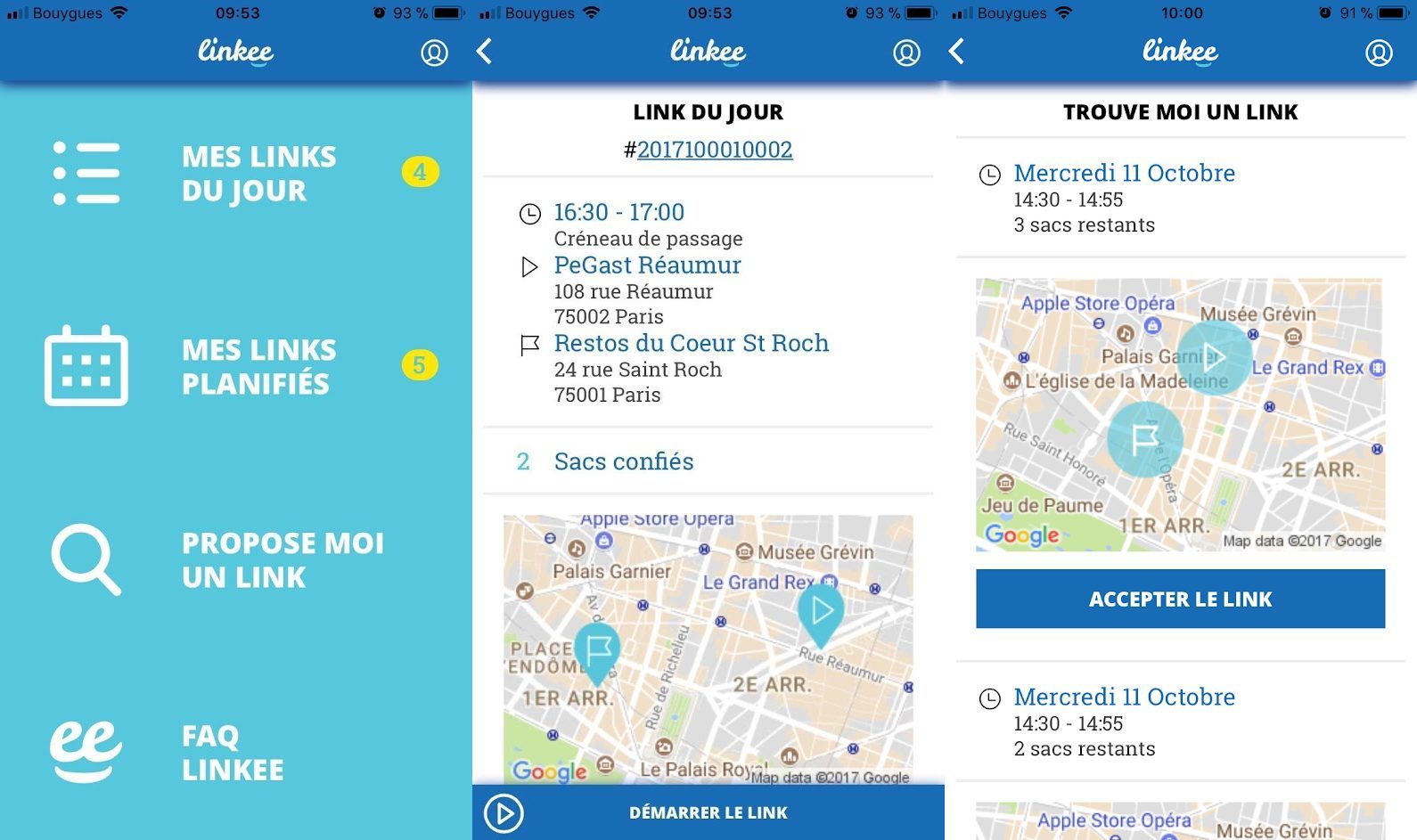 Les Links disponibles sont regroupés dans la catégorie “Propose-moi un Link”. Vous êtes libre d’accepter ou de refuser n’importe quelle mission. N’oubliez pas qu’en acceptant, vous vous engagez à vous présenter devant le magasin à l’heure convenue et à livrer dans la foulée le colis d’invendus à l’association indiquée par Linkee.
