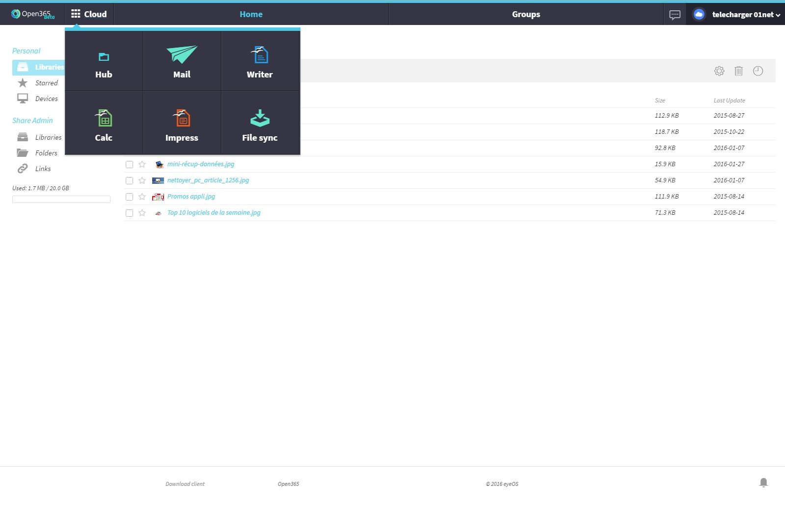 Alternative open source à Office 365 et Google Drive, Open365 propose une suite bureautique dans le cloud complète et fonctionnelle à ceux qui souhaitent s’affranchir de Microsoft et Google. Disponible via le navigateur, sur le bureau et depuis le mobile, Open365 dispose de nombreux outils pour vous aider à créer, éditer, sauvegarder et accéder à vos documents sur tous vos appareils à partir d’un même compte. Les versions logicielle et mobile de la suite offrent un espace de synchronisation en temps réel de 20 Go. Tout ce que vous entreposez dans votre espace de stockage sur votre ordinateur est instantanément accessible sur votre smartphone, votre tablette, ou en ligne. Il vous est évidemment possible d’attribuer des URL spécifiques à certains fichiers et répertoires que vous désirez partager avec vos contacts. Open365 se révèle plus exhaustif dans sa version web puisque le projet intègre un client mail, un traitement de texte, un tableur et un outil de présentation. L’ensemble vous offre une parfaite autonomie de travail en ligne, sans plus avoir besoin de recourir à Google Drive, ni Office 365.
