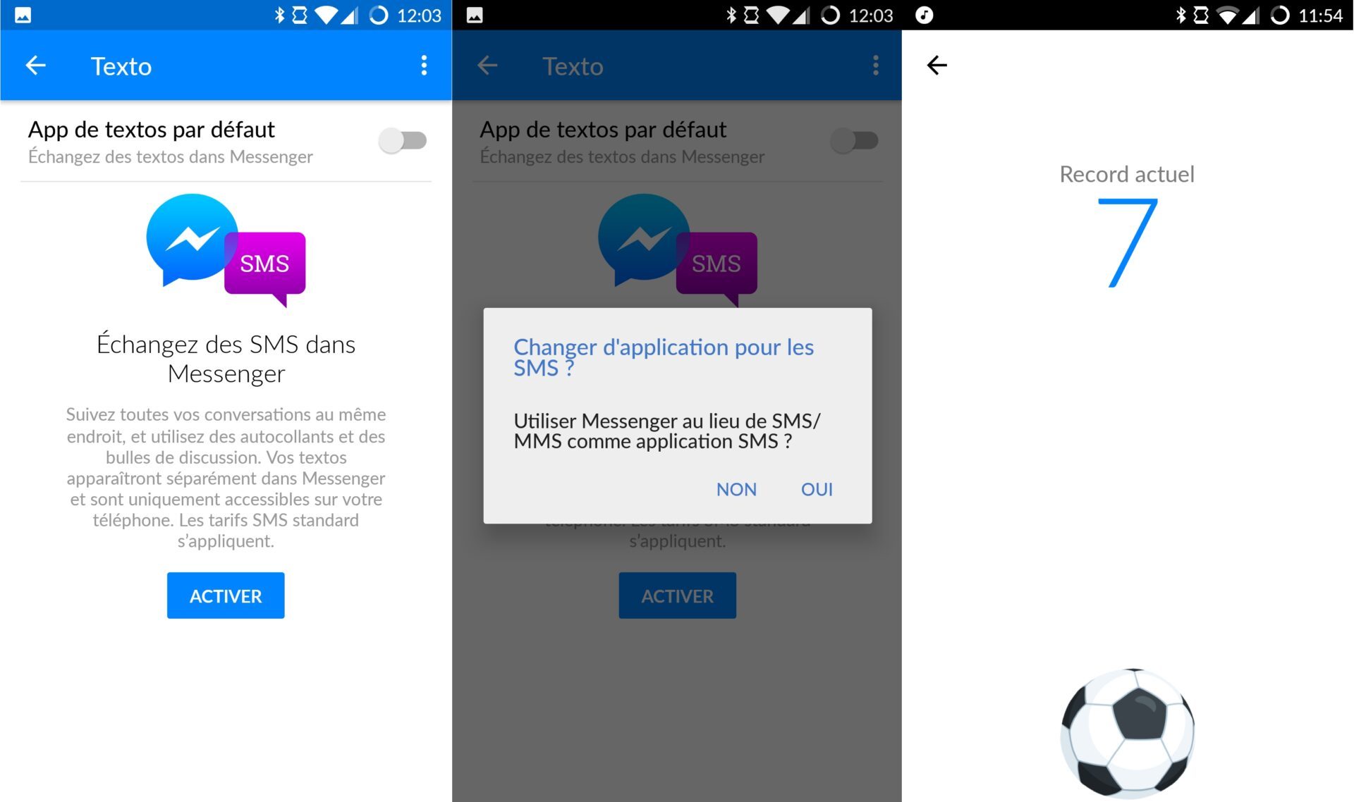 Facebook vient de mettre à jour Messenger, son application de messagerie instantanée. Sur Android, les utilisateurs de Facebook peuvent désormais utiliser Messenger comme application par défaut pour gérer leur SMS. Ainsi, il est possible de regrouper toutes ses conversations Facebook, affichées en bleu, et ses SMS présentés dans des bulles violettes. Autre nouveauté, disponible cette fois-ci sur Android et iOS, la possibilité de jouer avec vos contacts directement depuis Messenger. Le réseau social de Mark Zuckerberg se met à l’heure de l’Euro et vous propose de faire un concours de jongle avec vos interlocuteurs. Pour activer ce jeu caché, il vous suffit simplement d’envoyer l’émoticône figurant un ballon de foot et d’appuyer dessus pour commencer le défi.