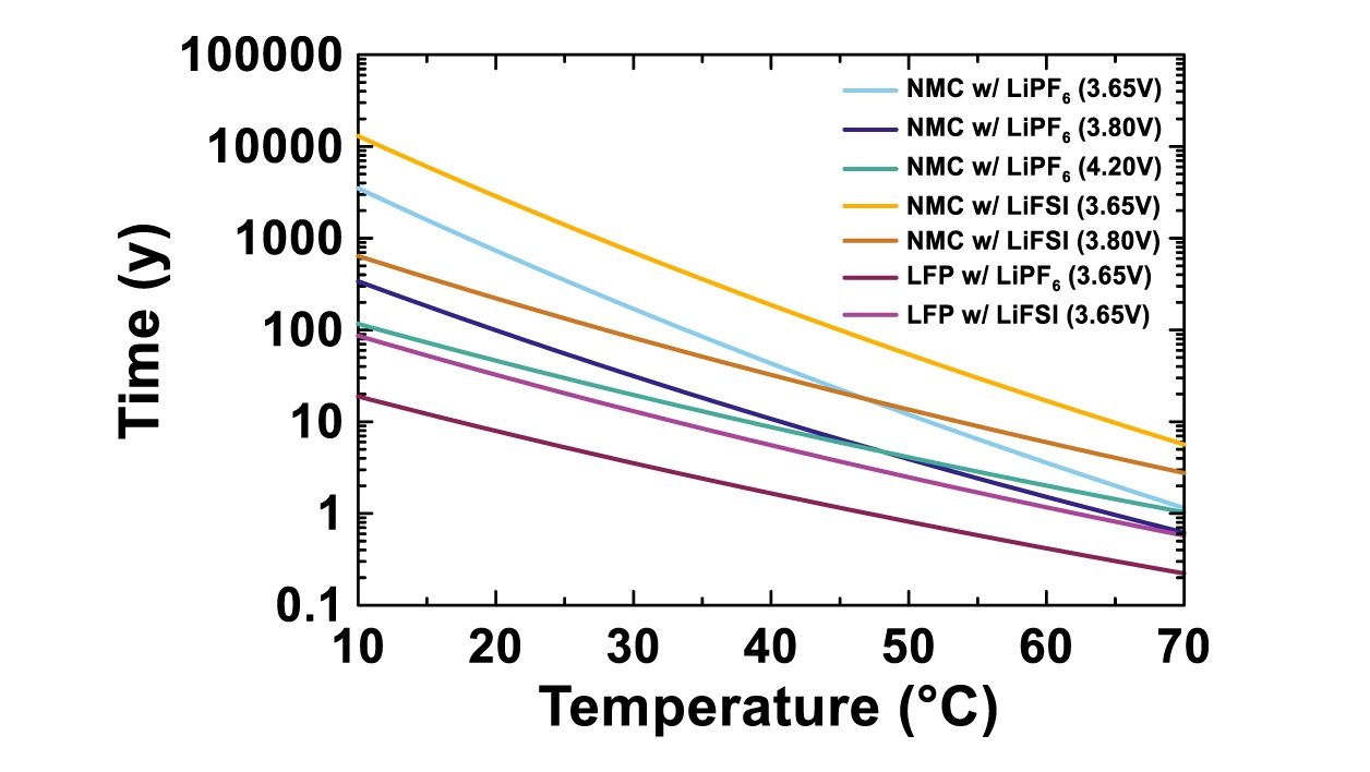 Les simulations d’utilisation de ces batteries ont permis d’établir que les cellules énergétiques conservent une forte capacité de rétention de l’énergie, malgré un grand nombre de cycles. Des résultats suffisamment impressionnants pour que les chercheurs indiquent qu’à une température d’utilisation de 25°C, ces accumulateurs pourraient voir leur durée de vie dépasser les cent ans. La clé semblant se trouver dans l’utilisation d’un électrolyte à base de sel de Lithium (LiFSI), très courante dans les batteries Lithium-ion.