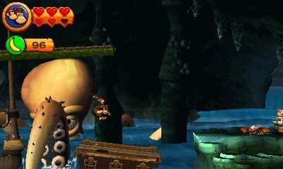 Esthétiquement, l’écran plus petit de la 3DS donne l’impression que les graphismes sont encore plus soignés. Donkey et Diddy roulent, bondissent, tapotent tout en fluidité et puissance. Les problèmes de réactivité parfois subis avec la Wiimote sont oubliés, le stick ou la croix directionnelle répond sans attendre, même si l’inertie du personnage fait parfois grincer des dents et que la configuration des boutons fait qu’on déclenche de temps à autres une roulade fatale alors qu’on aurait juste aimer souffler sur ce pissenlit en bord de précipice…