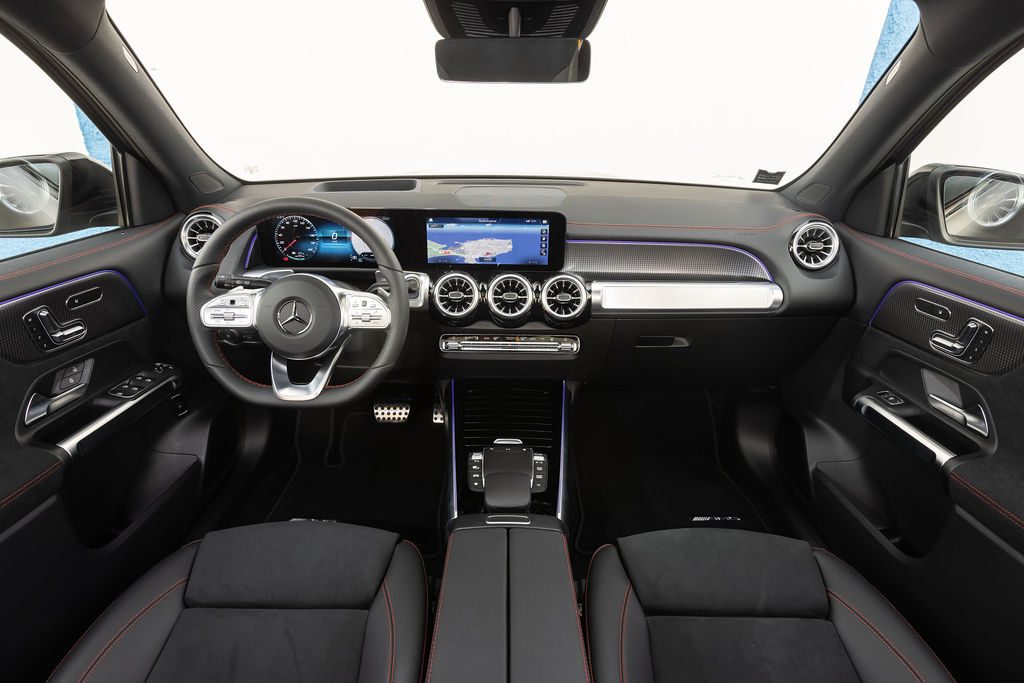 Nous passerons rapidement sur la partie esthétique de ce SUV à l’étoile puisqu’il reprend à quelques nuances près les traits du GLB thermique. Certes, il est 5 cm plus grand, ce qui a vue d’œil est bien difficile à distinguer. Certes, il dispose de sa propre signature lumineuse, et d’une calandre propre aux véhicules électriques de la marque, mais pour le reste, c’est un GLB tout ce qu’il y a de plus classique. Dès lors, nous aurions pu nous attendre à quelques changements dans l’habitacle, mais là encore Mercedes est resté fidèle à ses principes. Les évolutions majeures viendront avec les nouvelles plateformes, pas avant.