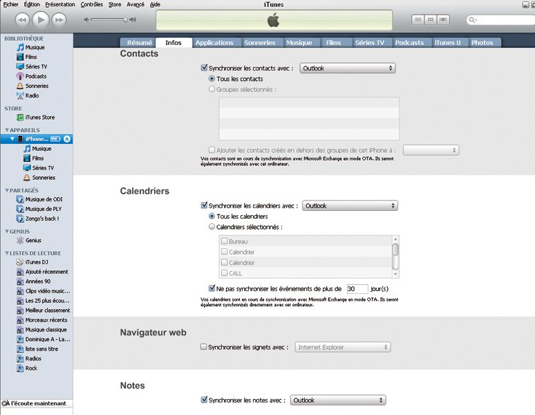 Le système d’exploitation de l’iPhone n’a pas été conçu à l’origine pour qu’il se comporte comme un « porte-documents ». Il est cependant possible d’y stocker des fichiers en téléchargeant sur l’App Store un programme tiers tel Files Lite. Pour ce qui est des informations personnelles, c’est-à-dire, les contacts, l’agenda et éventuellement les courriels, l’iPhone est de même niveau que la concurrence. Même si vous devez encore passer par l’incontournable iTunes, vous pourrez synchroniser vos courriels, contacts et agenda avec n’importe quel PC, voire avec plusieurs machines de manière simultanée.