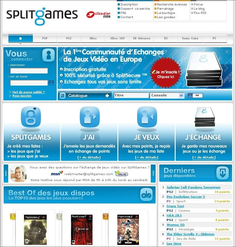 Splitgames est une plate-forme d’échange de jeux vidéo. Une fois inscrit, il suffit de spécifier dans ‘ J’ai ‘ les jeux dont vous ne voulez plus, et dans ‘ Je veux ‘ ceux que vous