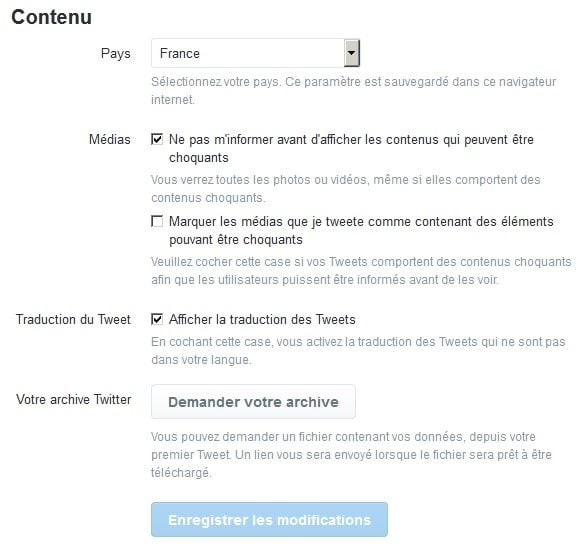 « Afficher la Traduction des Tweets ». Nous avons constaté à ce sujet, que la case était activée par défaut sur tous les comptes.