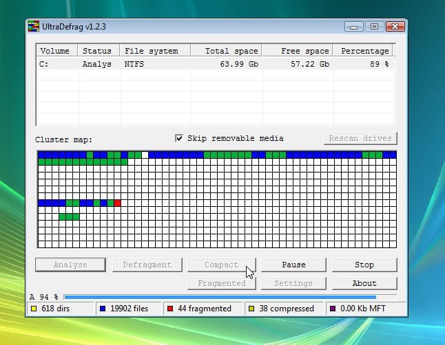 UltraDefrag. Il est vrai que le logiciel se montre à la fois très efficace et très rapide. Et sa fonction Compact permet de défragmenter les