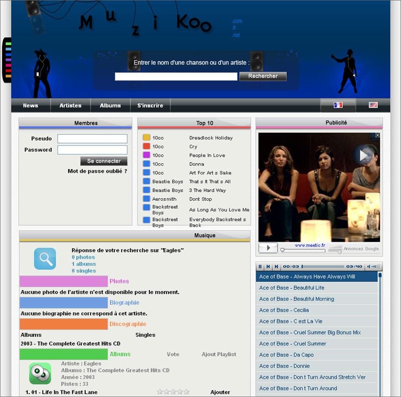 Voici un juke-box en ligne alimenté par les internautes, un peu à l’image de RadioBlog, bien que Muzikoo classe par artistes et non par playlists d’internautes. Malgré un choix encore restreint, ouvert à tous les