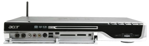 sait pas si l’option HDMI prendra ou non en charge la gestion du son.Pour la télé, ce Viiv est équipé de deux cartes tuner hybrides (analogique et numérique). On pourra regarder un programme et en enregistrer un autre. Acer proposera en option un tuner DVB-S pour la réception satellite. À l’arrière