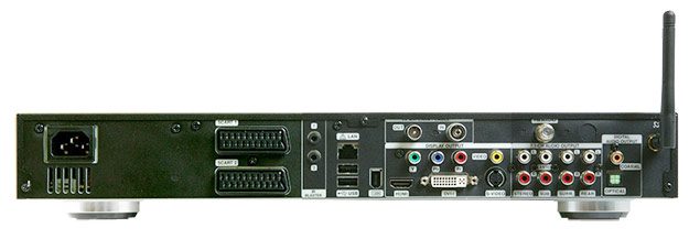 de l’appareil, on relève, fort logiquement, une entrée et une sortie antenne télé ainsi qu’une entrée antenne FM.Côté informatique, deux ports USB 2.0 (et deux autres en face avant), un port Ethernet RJ45, deux prises Firewire (4-pin en face avant et 6-pin en face arrière), une antenne Wi-Fi et un lecteur de cartes mémoire (SD, MMC,