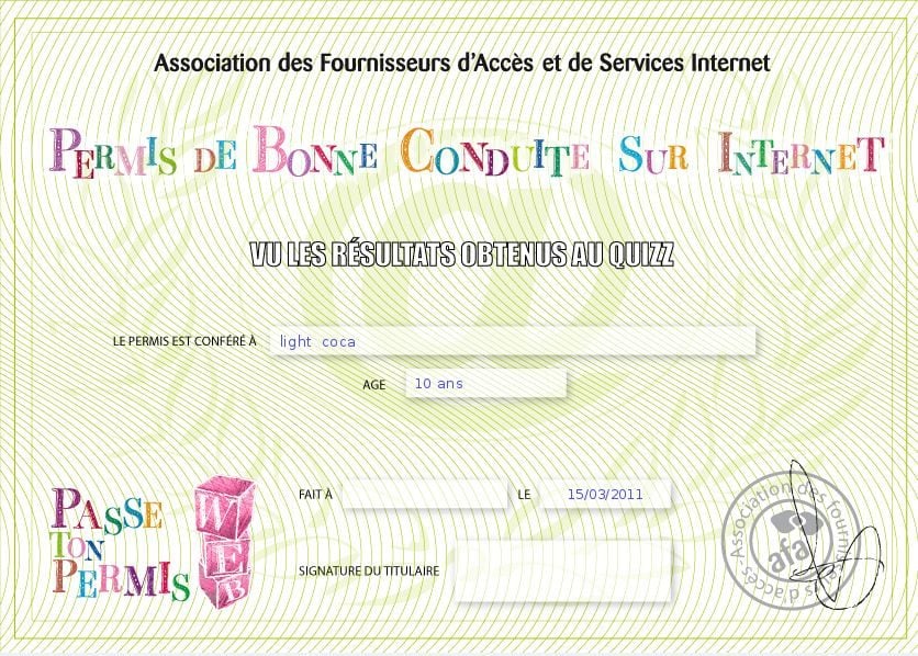En tout quinze questions suivies de trois propositions. Que la réponse fournie soit juste ou fausse, l’internaute reçoit des explications. Si nécessaire, elles lui permettront de réparer son erreur, mais dans tous les cas, elles vont alimenter sa réflexion sur le comportement à adopter. Au final, un permis nominatif est délivré à ceux qui auront su trouver les bonnes réponses.