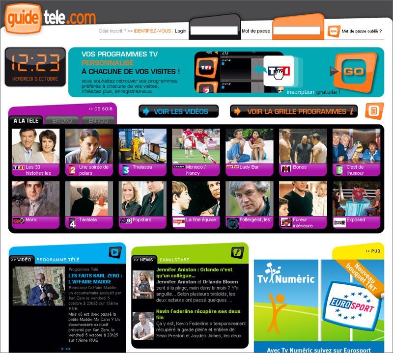 La nouvelle version de Guidetélé est présentée comme le premier programme télé en ligne personnalisable et incluant les bandes-annonces des émissions du soir. En réalité, l’ergonomie est discutable, les pubs envahissantes et, le jour