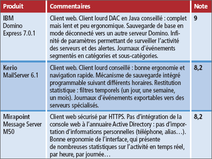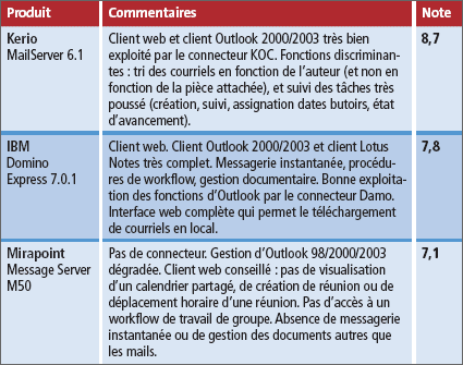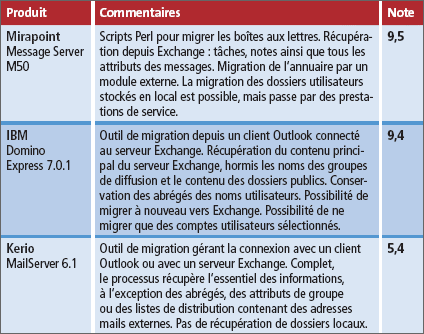 Les serveurs d’IBM et de Mirapoint sont les plus aboutis en la matière, car ils peuvent fonctionner conjointement avec le serveur Exchange 2003, durant le temps nécessaire au transfert de tous les comptes. Ce qui
