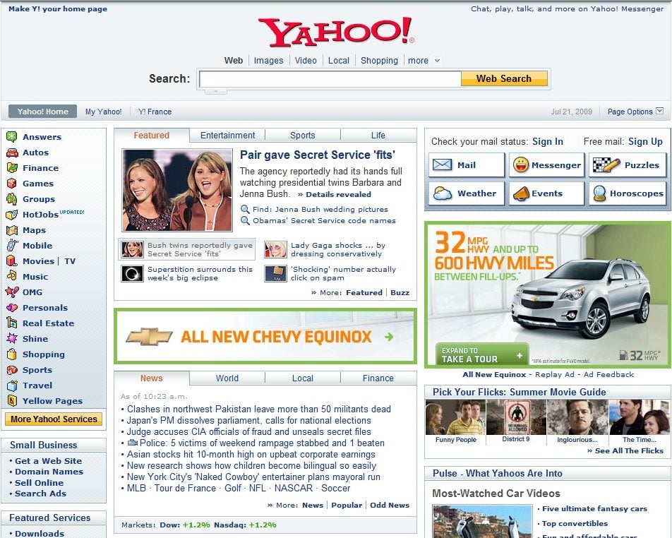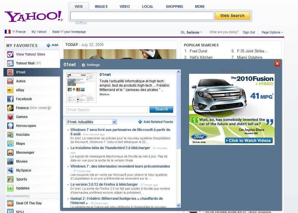 Attendue depuis plusieurs jours, la toute nouvelle page d’accueil de Yahoo! a été dévoilée hier, mardi 21 juillet. Disponible dans un premier temps sur son adresse américaine, elle devrait faire son apparition sur ses déclinaisons européennes et en Inde d’ici à quelques jours. La version française pourrait être en ligne dès ce jeudi 23 juillet.