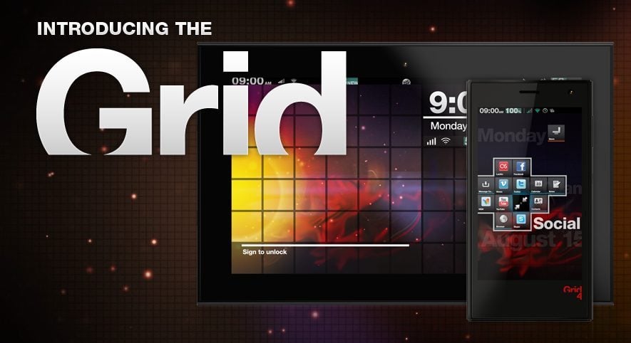 Mais ce qui étonne le plus dans cette annonce, c’est évidemment Grid OS. Un système d’exploitation à l’interface surprenante, mais qui ne sort pas de nulle part : il est bâti autour du noyau d’Android et les appareils sous Grid OS sont donc capables de faire tourner des applications conçues pour l’OS de Google… même si des soucis de compatibilité sont à prévoir. L’Android Market ne sera toutefois pas disponible et il faudra se rabattre sur un magasin alternatif, comme celui d’Amazon par exemple ou celui de Fusion Garage.