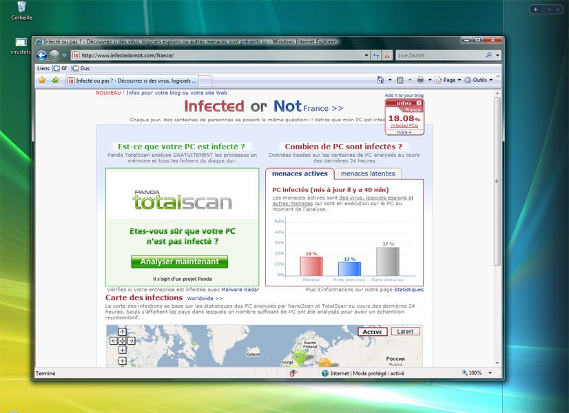 Il faut aussi savoir que les antivirus servent à empêcher les virus connus, uniquement connus (logique), de se propager dans votre ordinateur. Les virus ayants dans la plupart des cas à peut près 1 heure d'avance sur la mise à jour a-v, ceux-ci ne seront pas détectés par votre a-v avant la màj, ce qui signifie que vous pouvez être infecté tout le temps.