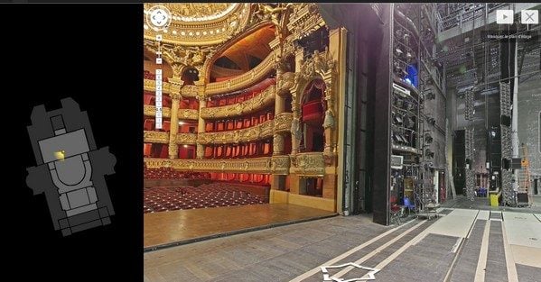 Grâce à la technologie Street View, le visiteur peut explorer des espaces traditionnellement fermés au public, comme les toits de l’Opéra, les coulisses, les salles de répétition situées sous le dôme… mais aussi redécouvrir étage par étage les éléments architecturaux qui font la beauté de l’ensemble comme l’escalier central, les sculptures…