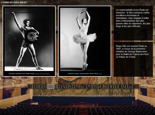 Une exposition en ligne, créée en 2013 à l’occasion du Tricentenaire de l’école française de danse, propose enfin 83 portraits des Etoiles du corps de ballet qui ont marqué l’histoire de l’Opéra de Paris de 1940 à nos jours, comme Patrick Dupond ou Marie-Claude Pietragalla.