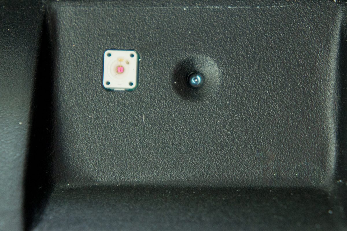 Une dernière caméra est intégrée dans la console centrale, au niveau du levier de vitesse. Elle est couplée à un capteur infrarouge, formant un dispositif permettant de piloter quelques fonctions multimédias, telles que le changement de piste en passant la main devant les capteurs, ou le mise en pause de la musique, cette fois-ci en laissant la main immobile.