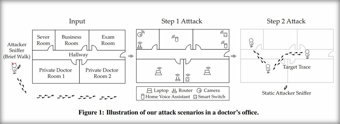 L’attaque imaginée et testée par les chercheurs se déroule de la manière suivante. Dans un premier temps, l’attaquant va d’abord se mouvoir autour des locaux ciblés avec son smartphone dans le but de localiser les différents routeurs et répéteurs, sources d’émission. Celles-ci, en effet, peuvent être différenciées au moyen de leurs adresses MAC. Il suffit ensuite de mesurer la puissance du signal reçu à différents endroits pour déduire leur localisation. Ayant fait ce premier travail de reconnaissance, l’attaquant peut ensuite mesurer et analyser en temps réel certaines propriétés des ondes, hautement sensibles à la présence mouvante d’objets. Et à partir de là savoir si quelqu’un est présent.