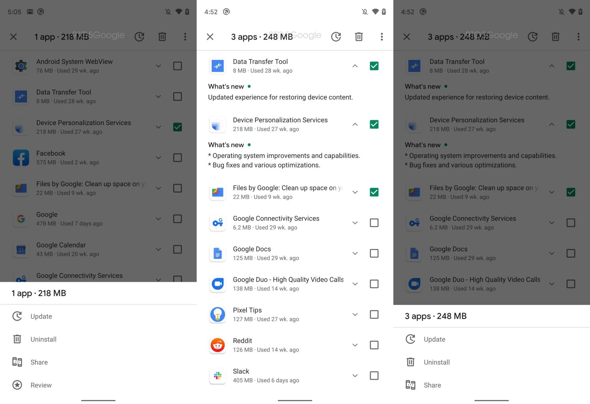 L’utilisateur pourra lancer toutes les mises à jour depuis le premier onglet, et gérer toutes ses applications depuis le second. Dans cet onglet Manage apps & Device, l’utilisateur aurait également accès aux notes de version des applications et pourrait en sélectionner plusieurs pour les désinstaller en une seule fois.