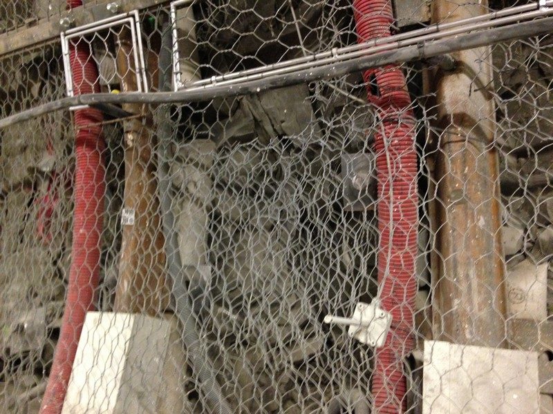 Le long des parois du site, on découvre parfois la roche à nue et de drôles de filets qui la couvrent. Les équipes de l’Andra procèdent en effet à des expérimentations sur la roche. Bure a été retenu à cause de la présence d’argile et de ses propriétés favorables/ Elle est en effet peu perméable et très stable géologiquement depuis 135 millions d’années. De quoi maintenir confinée la radioactivité.