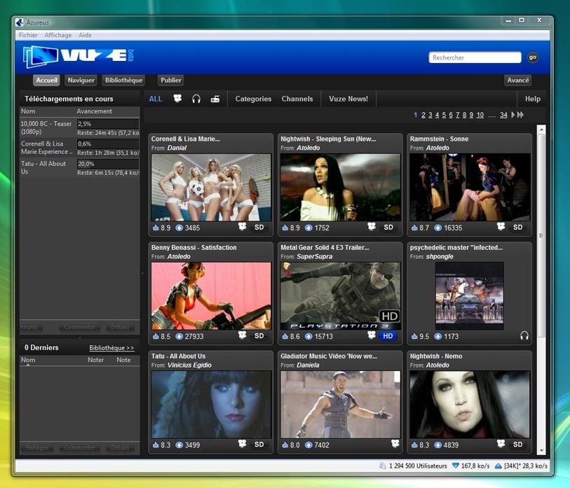 Créé par les développeurs du célèbre logiciel d’échanges de fichiers ‘ Azureus ‘, Vuze s’appuie sur le protocole ‘ Bit Torrent ‘ pour proposer des contenus (souvent en HD, ce qui démarque Vuze