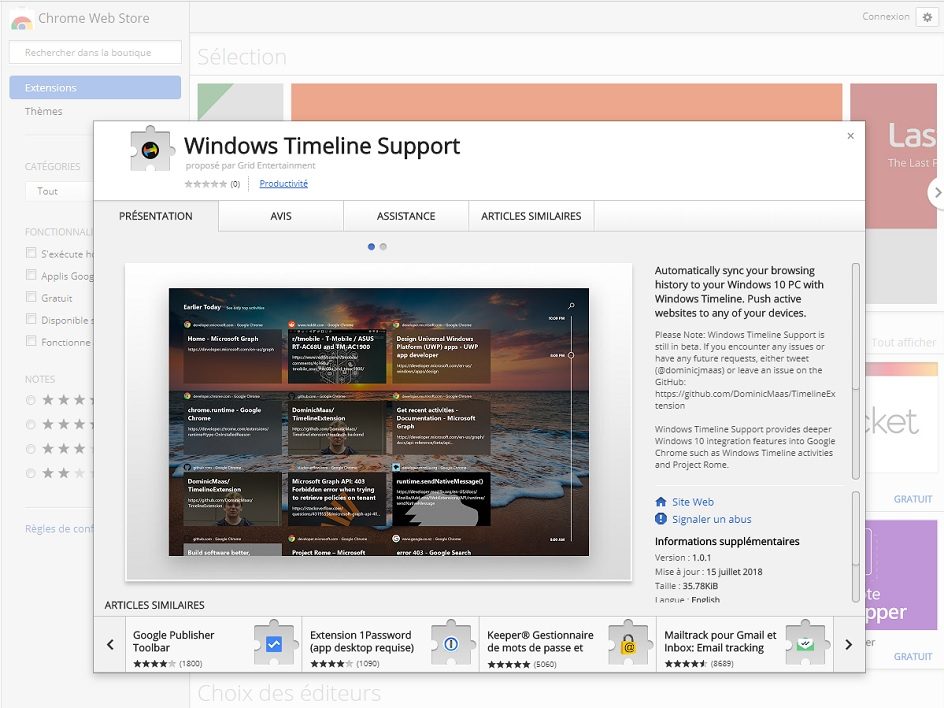 Il faut juste renseigner dans l’extension l’adresse de son compte Microsoft pour établir la connexion avec Timeline.