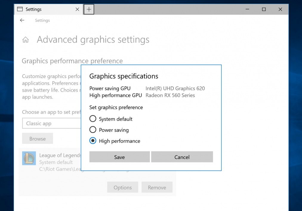 Microsoft a également prévu dans les paramètres d’affichage la prise en compte de plusieurs circuits graphiques, par exemple celui intégré au processeur et un circuit externe. Une fonction qui permet de choisir, application par application, si on souhaite utiliser le circuit graphique intégré ou sa puissante carte graphique. Ce qui permet d’éviter d’avoir à utiliser les panneaux de configuration fournis par AMD et Nvidia, qui resteront néanmoins toujours disponibles.