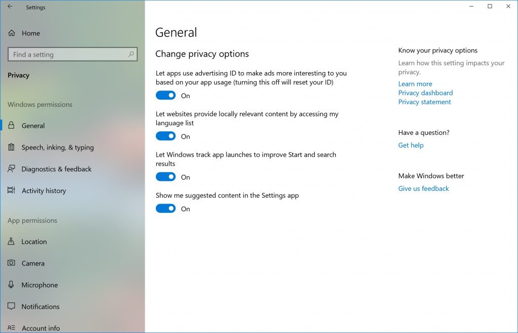 Les données de diagnostic peuvent désormais être effacées en cliquant sur un simple bouton et le panneau des paramètres donne directement accès aux principales options concernant la vie privée.