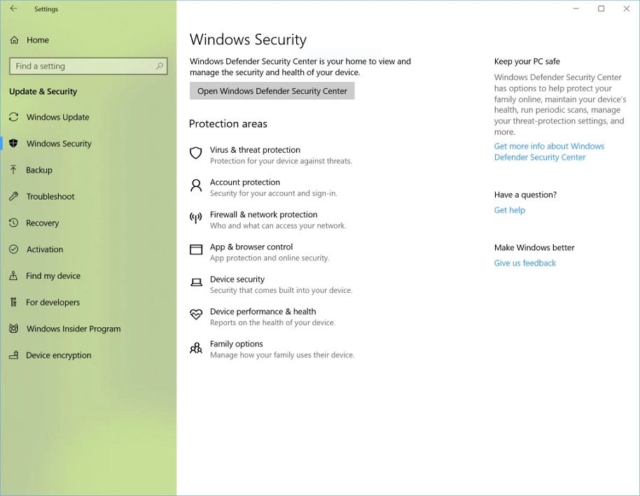 Microsoft rend également son logiciel de sécurité Windows Defender plus facilement accessible en plaçant son centre de contrôle directement dans les paramètres du système d’exploitation.