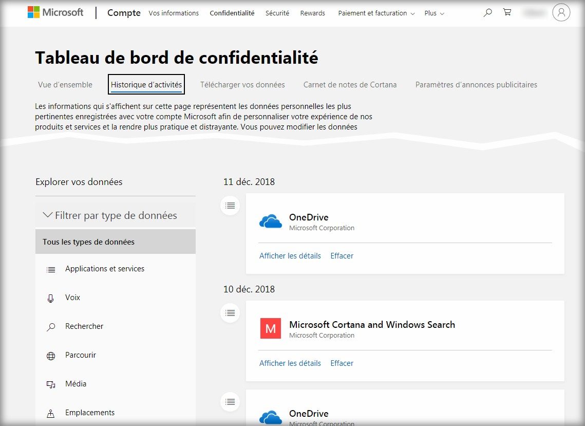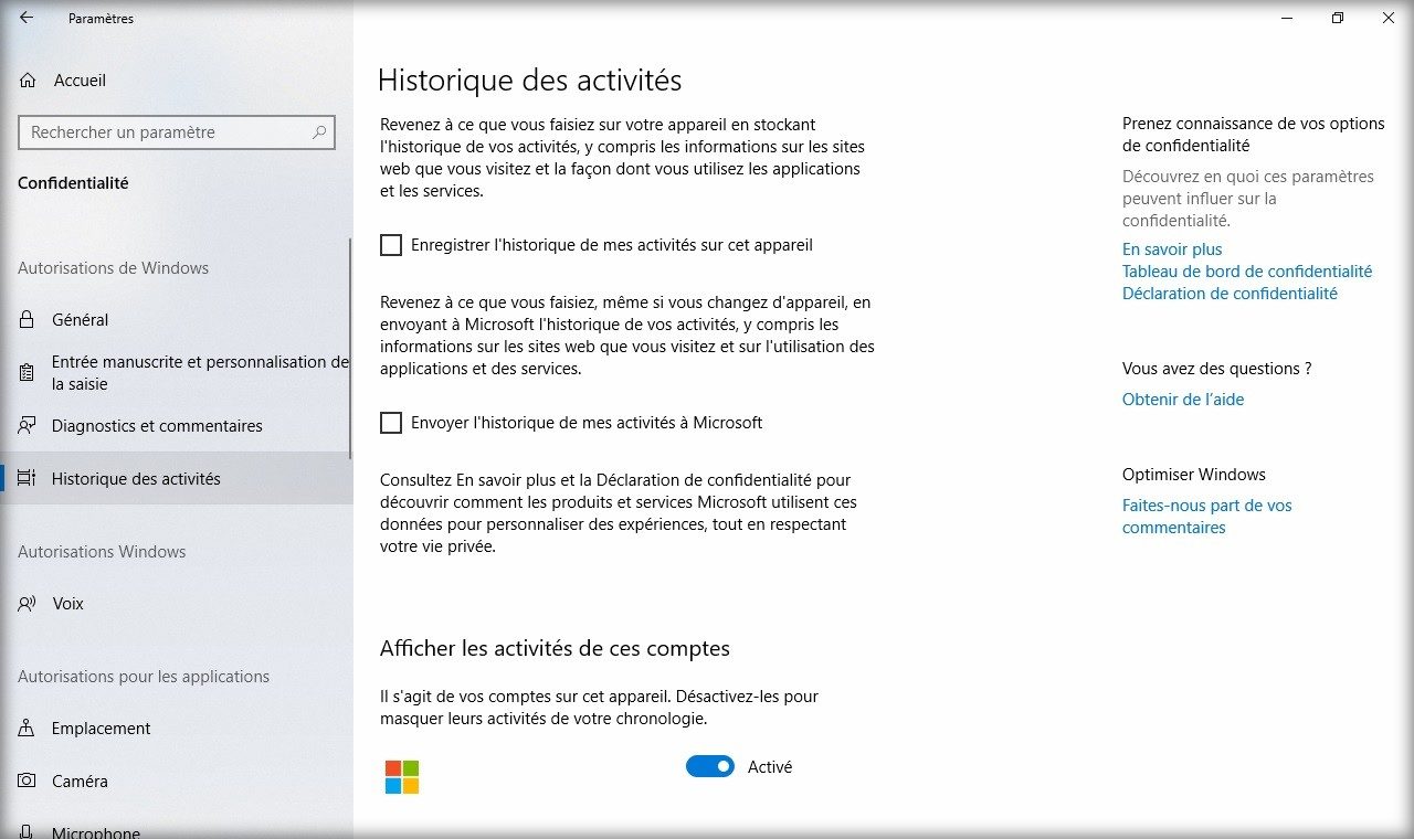 Pour se rendre compte de cette bizarrerie, il suffit de se connecter au « Tableau de bord de confidentialité » de son compte Microsoft. Dans l’onglet « Historique des activités », on peut quand même retrouver les traces de nos activités sur le PC Windows et savoir quelles applications ont été lancées à quel moment.