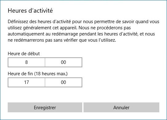 Rappelons que pour l’instant, la seule solution pour empêcher un redémarrage sauvage de la machine et de définir des « heures d’activité », c’est-à-dire un créneau horaire pendant lequel le système n’effectuera ni mise à jour, ni redémarrage.