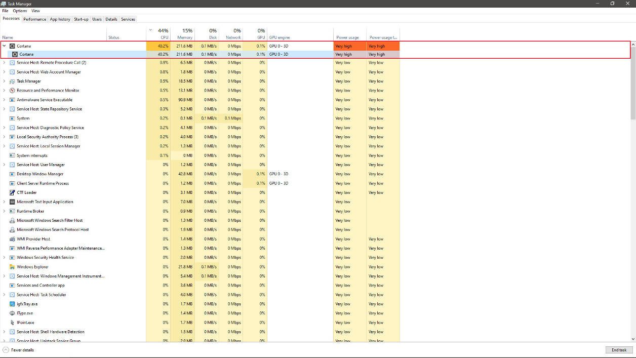 En analysant les listes des tâches et processus en cours, ils ont découvert que le problème venait des exécutables liés au fonctionnement de Cortana.