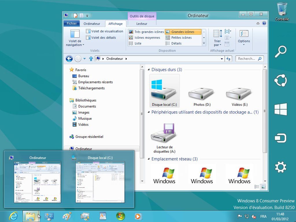 Avec la Developer Preview, nous avions découvert le nouveau mécanisme de copie de fichiers qui affiche une vue graphique des performances et permet de mettre en pause certaines copies en cours. De ce côté-ci, rien n’a changé dans la Consumer Preview.