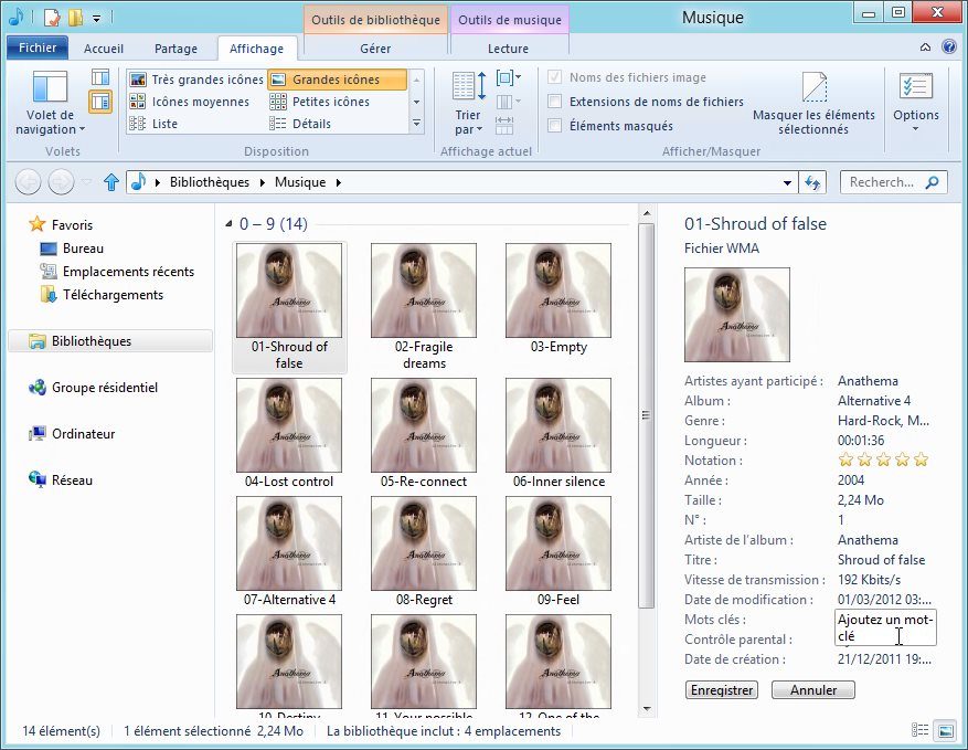 Parmi les autres améliorations de l’explorateur, les petits bugs qui subsistaient sur le volet des détails ont disparu. Rappelons que ce volet permet d’éditer certaines propriétés des fichiers comme le genre des fichiers de musique, les notes d’intérêt des contenus multimédias, l’auteur de documents bureautiques, les champs descriptifs de certains fichiers, etc.
